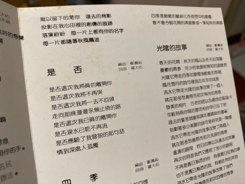 拍攝自張艾嘉《 童年 》專輯 CD 內頁之歌詞